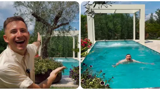 Îndrăgitul actor Emilian Crețu a dat start sezonului de scăldat în piscina din curtea locuinței sale luxoase unde a amenajat o cascadă unică în felul ei și cu palmieri în preajmă: ”În Sfârșit, am cascadă la bazin!”.