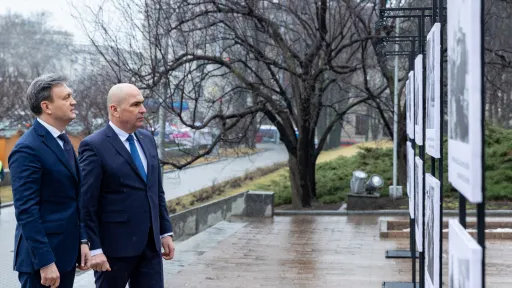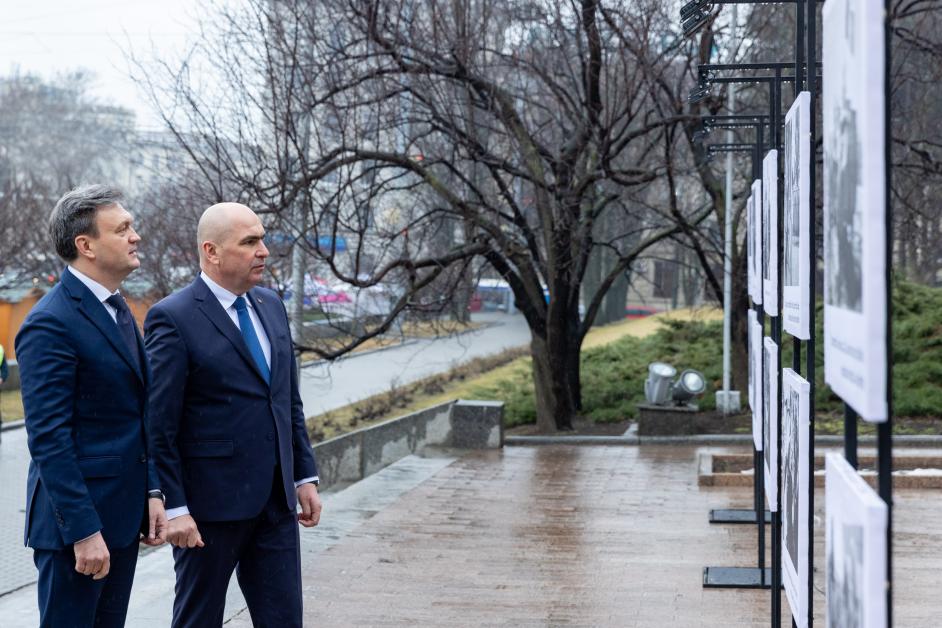 Expoziția din fața Executivului a fost deschisă de către prim-ministrul Dorin Recean și președintele interimar al României, Ilie Bolojan, aflat într-o vizită oficială la Chișinău.