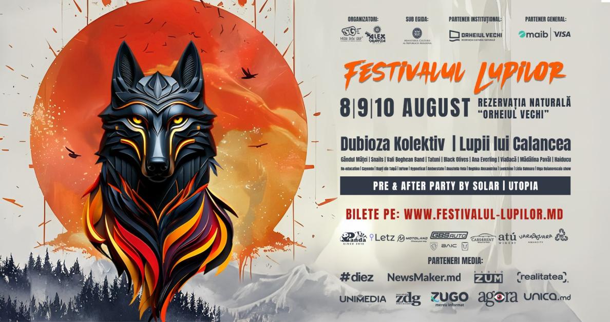 Mai e puțin de o lună până la startul unuia dintre cele mai vibrante evenimente ale verii — ediția aniversară 5 ani de Festivalul Lupilor 2025, care va avea loc în perioada 8–10 august în Rezervația Cultural-Naturală Orheiul Vechi. Acest festival unic de tip camping promite trei zile de muzică live, atmosferă vibrantă și o mulțime de activități pentru toate vârstele — exact ce ai nevoie pentru o vacanță de familie, în mijlocul naturii. Biletele sunt disponibile pe www.festivalul-lupilor.md — grăbește-te să-ți rezervi locul la această sărbătoare de neuitat!