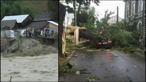 Mai multe ambulanţe au intervenit pentru a prelua persoane rănite, autorităţile spunând că zeci de copaci au căzut, peste maşini şi case, iar mai multe drumuri sunt blocate. Furtunile au făcut ravagii în Bistrița și Brăila, lăsând pagube pentru localnicii din județ. Mai multe locuințe au rămas fără energie electrică, arborii s-au prăbușit peste mașini, rafalele de vânt au doborât mai mulți copaci și au smuls bucăți de tablă de pe mai multe case.