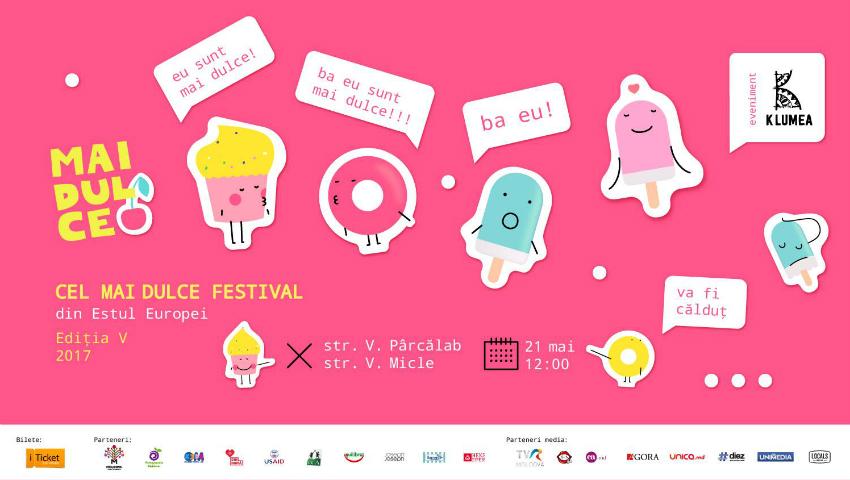 Cel mai dulce festival din Estul Europei revine la Chișinău pe 21 mai cu o nouă ediție, scăldată în deserturi savuroase. Cei care vor ajunge la Festivalul “Mai Dulce” se vor înfrupta cu deserturi naționale și internationale și vor gusta din bucate raw-vegane. De asemenea, în cadrul Teatrului Gastronomic veți putea învăța secretele preparării lor de la cei mai buni patisieri amatori. Printre aceștia se vor număra: Julia Rodnițchi, prima câștigătoare a trofeului ”Cireșa de pe tort”, Otilia Stăvilă - cel mai mic și drăgălaș bucătar din țară, Dorin Mereuță – unul dintre cei mai iscusiți brutari, bloggerițele Ana-Maria Scripcari și Natalia Madan și nutriționista Corina Dascălu. Vedeți mai jos programul Teatrului gastronomic în detalii și ce vor găti invitații.