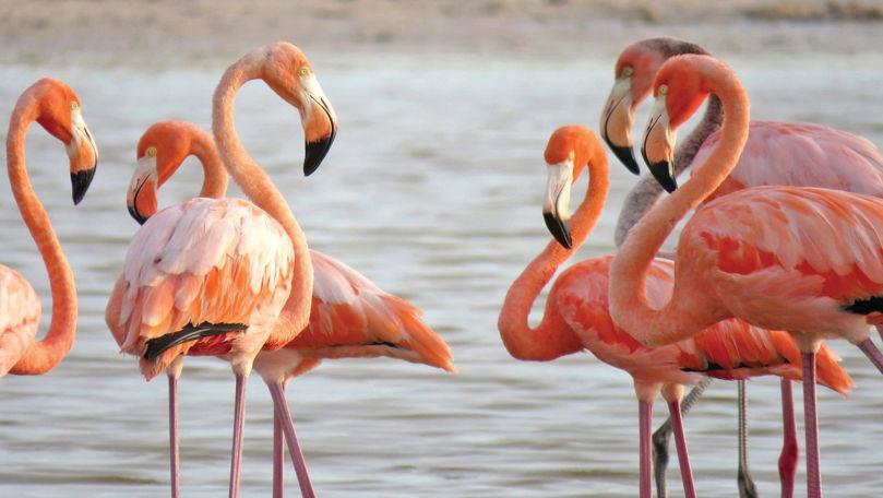 Păsările flamingo au poposit, din nou, în Delta Dunării. Grațioase și frumoase, păsările au fost observate pe brațul Sfântu Gheorghe de către specialiștii Administrației Rezervației Biosferei Delta Dunării.
