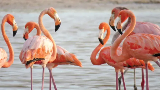 Păsările flamingo preferă habitatele cu întindere mare de apă de adâncime redusă, respectiv 30-50 cm, unde caută hrana în mâl cu ajutorul ciocului. Se hrănesc în special cu nevertebrate de toate genurile pe care le filtrează cu ciocul din mâlul de pe fundul lacurilor. Culoarea roz o capătă datorită cantității mari de carotenoizi pe care o dobândesc datorită consumului crustaceelor capturate de pe fundul lacurilor cu apă salmastră sau sărată. Lungimea corpului este de 120-145 cm, iar anvergura aripilor este de 140-165 cm, cu o masă corporală de 2,1-4,1 kg.