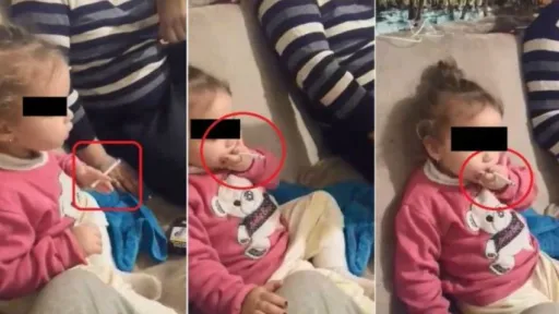Potrivit observator.tv, cei de la Protecția Copilului au decis momentan, ca minora să rămâna în familie. Aceasta a fost internată în spital pentru analize medicale, alături de mama sa. În urma publicării imaginilor, autoritățile române au deschis un dosar penal pentru săvârșirea infracțiunii de rele tratamente aplicate minorului, conform art.197 din Codul penal.Părinții susțin, că nu au luat parte la cele întâmplate, iar în acea zi au lăsat fetița pentru câteva ore la rude.Mai jos, puteți vedea imaginile unde inițial, copila era recitentă și se îneca de la fumul de țigară, însă fiind încurajată de către un bărbat și o femeie care erau prezenți în odaie, începe să fumeze.