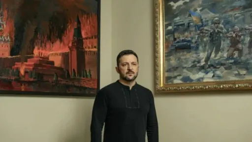O fotografie cu președintele ucrainean Volodimir Zelenski, pozând în fața unei picturi ce înfățișează Kremlinul în flăcări, a stârnit reacții dure din partea Kremlinului, transmite adevărul.ro.