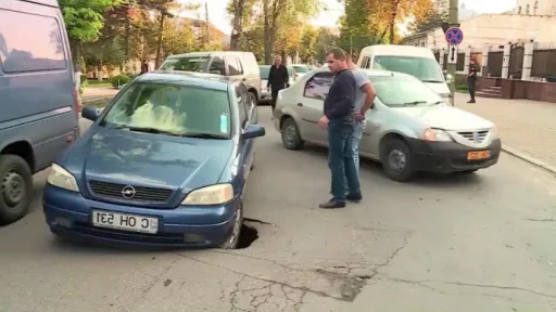 Rând pe rând, conducătorii auto au fost prinşi în capcană. Din cauza incidentelor, în zonă s-au format ambuteiaje. Șoferii au avut nevoie de ajutoare serioase pentru a-și scoate din gaură mașinile.Groapa s-ar fi format noaptea trecută din cauza unei avarii la reţelele de apă. Angajaţii Regiei Apă-Canal au înlăturat problema, iar muncitorii urmează să asfalteze drumul. sursa: www.publika.md