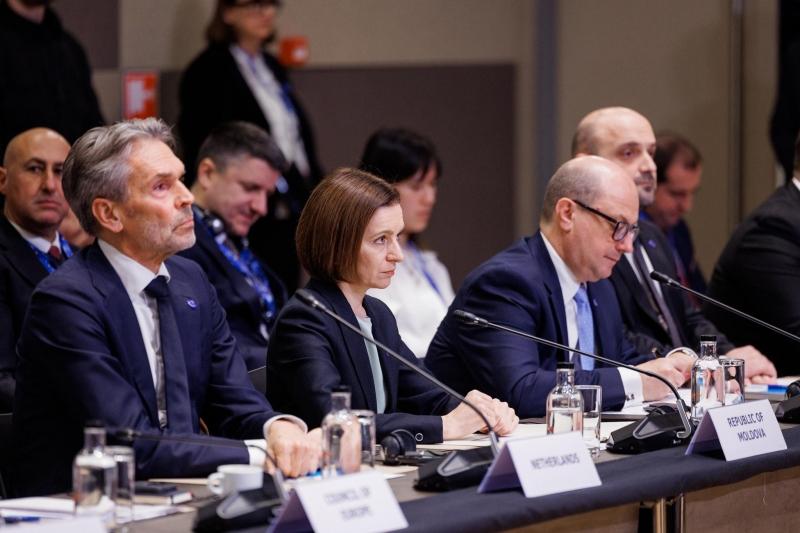Președinta Republicii Moldova, Maia Sandu, a deschis Conferința diplomatică pentru instituirea Comisiei Internaționale de Reclamații pentru Ucraina, eveniment de anvergură internațională organizat la Haga, alături de Prim-ministrul Regatului Țărilor de Jos, Dick Schoof, Președintele Ucrainei, Volodymyr Zelenskyy, și Secretarul General al Consiliului Europei, Alain Berset.