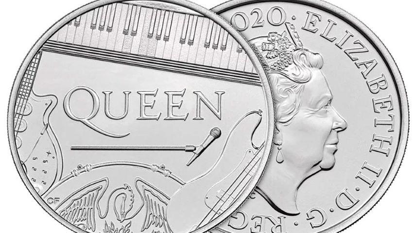 ,,Acesta este un moment din seria 'cine-ar fi crezut?'. Aici am o monedă a regatului nostru, o monedă cu valoarea de cinci lire sterline, emisă de The Royal Mint, cu un design clasic", a declarat chitaristul principal al trupei Queen, Brian May, într-o înregistrare video în care prezintă o monedă de o uncie, fabricată din argint."Pe o faţă o avem pe regină (Elisabeta a II-a, n.r.), pe cealaltă faţă avem trupa Queen. Aşa ceva nu s-a mai întâmplat niciodată", a adăugat celebrul muzician britanic.Pe toate monedele şi bancnotele britanice apare chipul monarhului - regina Elisabeta a II-a. Noua monedă, prezentată luni, conţine logoul trupei şi instrumentele la care au cântat membrii formaţiei Queen: pianul Bechstein folosit de Freddie Mercury când a înregistrat cântecul "Bohemian Rhapsody", chitara "Red Special" utilizată de Brian May, setul de tobe Ludwig la care a cântat Roger Taylor şi chitara bas Fender Precision folosită de John Deacon.Designerul monedei, Chris Facey, a adus la rândul său un tribut piesei "Bohemian Rhapsody", unul dintre cele mai cunoscute cântece din repertoriul trupei Queen, printr-un design special, în care anumite clape ale pianului de pe monedă par a fi apăsate pentru a reproduce primele note din acest single celebru, au precizat reprezentanţii The Royal Mint într-un comunicat.Noua monedă comemorativă este disponibilă în aur şi argint, cu preţuri care variază de la 13 lire sterline pentru moneda necirculată de 5 lire Brilliant şi până la 2.100 de lire sterline pentru moneda din aur de o uncie. Piesa dedicată trupei Queen este prima monedă emisă de The Royal Mint în cadrul unei serii viitoare, intitulată "Music Legends".