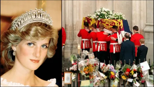 Douăzeci de ani mai târziu, înmormântarea Prințesei Diana rămâne una dintre cele mai vizionate evenimente de televiziune din istorie. Se estimează că la nivel mondial, 2,5 miliarde de persoane au vizionat funeraliile iubitei printese, iar un milion de oameni au străbătut străzile Londrei pentru a-i aduce un ultim omagiu.După ce a decedat la Spitalul Pitie-Salpetriere din Paris, corpul Dianei a fost dus la baza Royal Air Force. Prințul Charles, alături de surorile Dianei, Lady Jane Fellowes și Lady Sarah McCorquodale, i-au însoțit trupul înapoi, din Franța, pe 1 septembrie 1997.https://youtu.be/u234-WDHeBASicriul, drapat într-un drapel Royal Standard, a primit o scurtă procesiune de către vameșii de la Royal Air Force. Mai târziu, a fost plasat într-o jafă, înainte de a fi condus la un mortuar nedezvăluit. În seara de dinaintea funeraliilor, corpul neînsuflețit al Prințesei a fost dus la Palatul Kensington. Prințul Charles, prințul William și prințul Harry au însoțit cortegiul funerar, la fel ca și reprezentanții numeroaselor organizații de caritate cu care a lucrat Diana. Serviciul memorial al prințesei Diana a fost o înmormântare ceremonială regală, nu o înmormântare de stat. Sicriul a fost îmbrăcat cu steagul Royal Standard și a fost decorat cu crini albi.https://youtu.be/n2ICGs_XA5QImaginea cu prințul Harry, de 12 ani, la funerariile mamei sale a rămas în istorie. Doar recent, Harry, de 32 de ani, și-a reamintit oroarea experienței, spunând că nici un copil nu ar trebui să treacă prin ceea ce a trăit el la momentul resprectiv.La funerariile Prințesei Diana au participat membrii familiei regale și familiei Spencer, politicieni, celebrități, prieteni și colegi de la numeroase organizații de caritate: premierul britanic Blair, Hillary Clinton, Nicole Kidman, Tom Cruise, Tom Hanks, Elton John, soțul său David Furnish, George Michael, Steven Spielberg, Sting și Trudi Styler, Diana Ross, omul de afaceri Richard Branson, Donatella Versace, Karl Lagerfeld, Anna Wintour și mulți alții. Primul imn a fost ales de către prințul William, care l-a ales pentru că era preferat de mama sa, potrivit BBC la acea vreme. Prietenul ei, Elton John, a interpretat apoi o versiune reluată a hitului său din 1973 Candle in the Wind, o melodie scrisă inițial despre Marilyn Monroe, dar care a fost asociată cu prințesa încă de atunci.https://youtu.be/1o9rLDCfO6oÎnmormântarea a fost o afacere privată, numai cu familia Spencer, prințul Charles, William și Harry.Diana a fost pusă să se odihnească pe o insulă, în mijlocul unui lac, din locurile unde se juca când era copil. Ea a fost îmbrăcată într-o rochie neagră cu mâneci lungi, de Catherine Walker, unul dintre designerii ei preferați. Rozariul pe care Maica Teresa i l-a dat cu doar două luni înainte de moartea ei, a fost prins în mâna prințesei.Locația finală are un mic templu, împreună cu o statuie comemorativă la intrare. La începutul verii, Ducele și Ducesa de la Cambridge, copiii lor Prince George și Prințesa Charlotte și prințul Harry au participat la un serviciu memorial privat, cu familia Spencer, pentru a comemora cea de-a 20-a aniversare a morții Dianei.Astăzi, o statuie în onoarea Prințesei Diana, va fi dezvăluită public la Palatul Kensington. "Au trecut douăzeci de ani de la moartea mamei noastre și a sosit timpul să recunoaștem impactul său pozitiv în Marea Britanie și în întreaga lume cu o statuie permanentă", au declarat, la începutul acestui an, Prințul William și Prințul Harry. "Mama noastră a atins atât de multe vieți, sperăm că statuia îi va ajuta pe toți cei care vizitează Palatul Kensington să reflecteze asupra vieții și moștenirii ei".