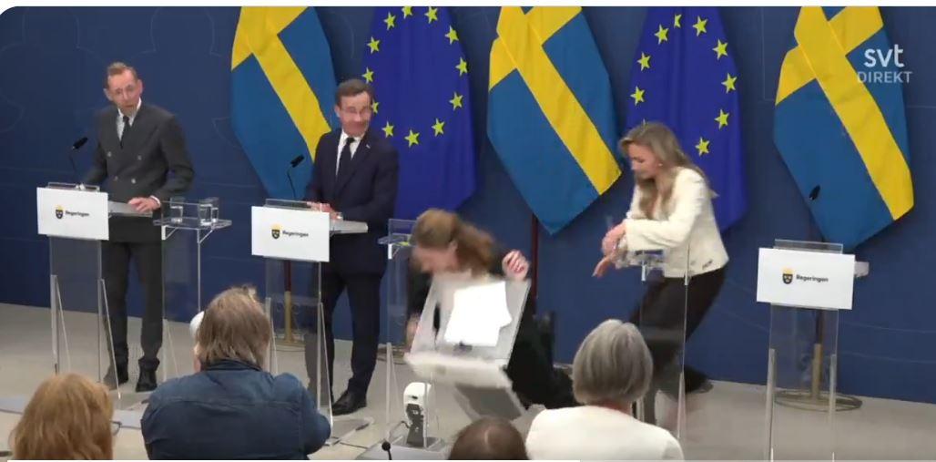 Reacția celor prezenți a fost imediată. O colegă din guvern, aflată în apropierea sa, a sărit să o sprijine, iar premierul Ulf Kristersson, poziționat de cealaltă parte, a intervenit, de asemenea, pentru a-i acorda ajutor.