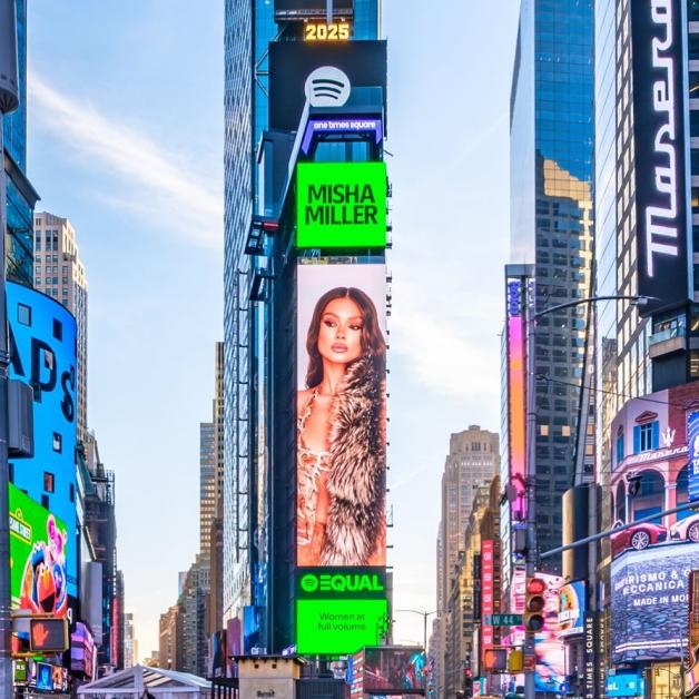 Misha Miller bifează o nouă performanță la care visează orice artist: tânăra cântăreață din Republica Moldova a apărut în toată splendoarea pe uriașele ecrane din Times Square, New York. Numele și chipul ei au fost afișate în inima metropolei americane datorită programului global Spotify EQUAL, care promovează egalitatea de gen în industria muzicală.