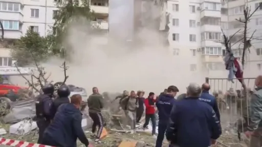 Pe rețelele de socializare au apărut imagini care arată momentul în care un bloc de 10 etaje s-a prăbușit în Belgorod.