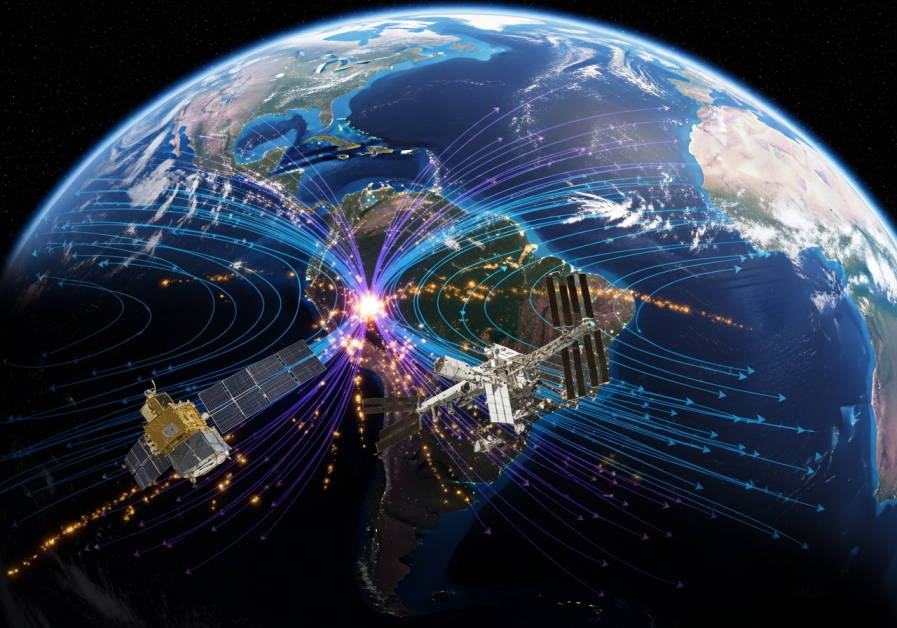 NASA monitorizează cu atenție Anomalia Atlanticului de Sud, o regiune vastă unde câmpul magnetic al Pământului este semnificativ mai slab decât în restul planetei. Zona se întinde între America de Sud și sud-vestul Africii și afectează grav sateliții și echipamentele spațiale care o traversează.