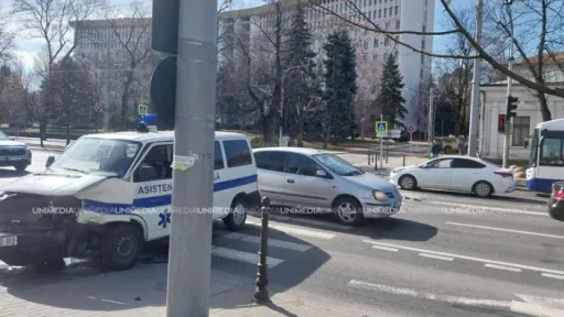 Un accident rutier s-a produs astăzi în centrul capitalei, la intersecția străzi Sfatul Țării și bd. Ștefan cel Mare și Sfânt. O ambulanță și o mașină au fost distruse, după ce s-au lovit violent, informează unimedia.md.