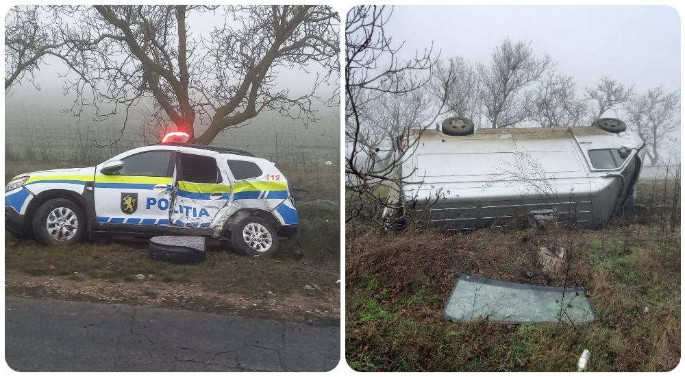 Potrivit informațiilor preliminare, echipajul de poliție efectua o manevră de virare la stânga, în loc permis, când a fost lovit de microbuzul care a intrat pe contrasens. În urma impactului, angajații Poliției au avut nevoie de îngrijiri medicale.