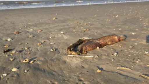 Animalul, care seamănă cu un peşte cu colţi, dar fără ochi, a eşuat pe o plajă şi a fost găsit de o localnică, scrie realitatea.net.Femeia a postat imaginile pe Twitter pentru a afla despre ce specie este vorba.Un biolog a scris că peştele ar putea fi o anghilă cu colţi, un animal care trăieşte la o adâncime între 30 şi 90 de metri, în Oceanul Atlantic.
