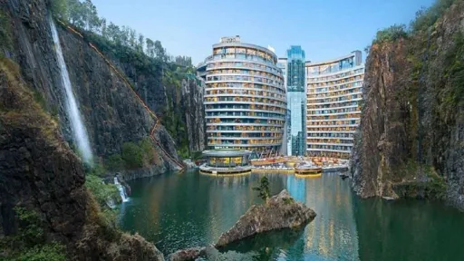 În China, a avut loc deschiderea hotelului care se află la o adâncime de aproape 90 de metri, deoarece este construit în peretele abrupt al unei vechi cariere abandonate. Specialiștii au dezvoltat timp de câțiva ani designul unui hotel de cinci stele complet neobișnuit și chiar extravagant, care ar fi construit nu doar sub pământ, dar și sub apă.