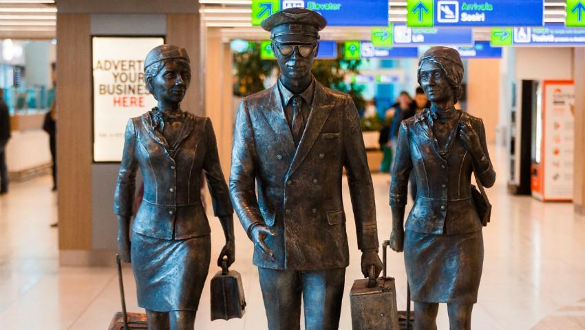 Aeroportul Chişinău are o sculptură proprie. Compania care gestionează instituția a inaugurat lucrarea, care prezintă imaginea unui pilot, urmat de două însoţitoare de bord.