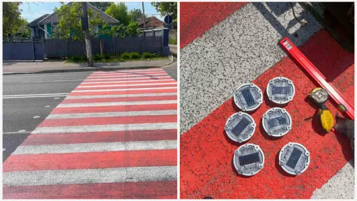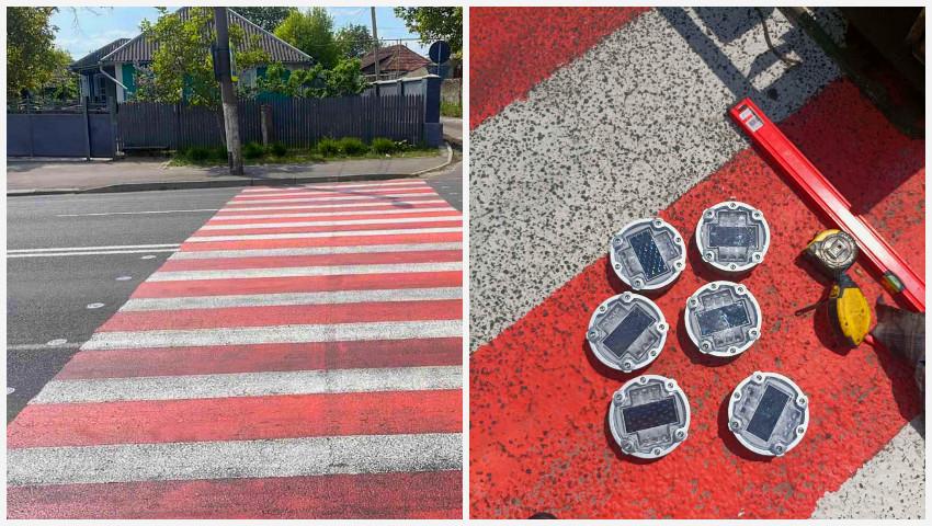 O trecere de pietoni din localitatea Peresecina, km 28+740, a fost securizată suplimentar cu butoane fotovoltaice încorporate.