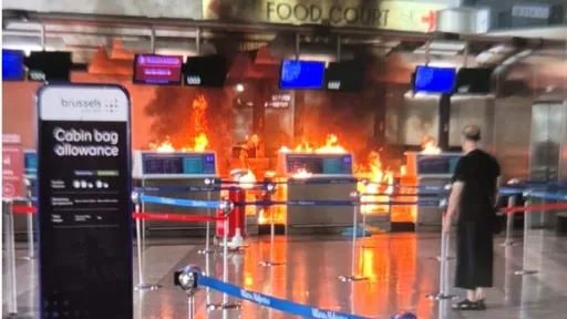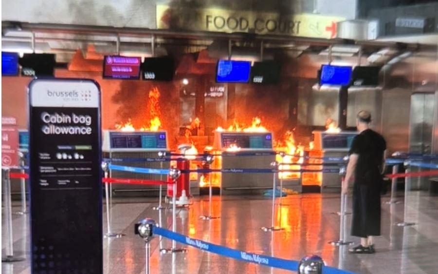 Potrivit martorilor, flăcările au izbucnit la un ghișeu de check-in, în timp ce pasagerii fugiau speriați. Un bărbat a fost surprins lovind cu un ciocan panourile digitale și un panou publicitar din apropierea incendiului. Într-o secvență video, un alt pasager îl confruntă, strigând „culcă-te la pământ” și îl lovește în cap cu un extinctor, reușind astfel să-l imobilizeze până la sosirea poliției.