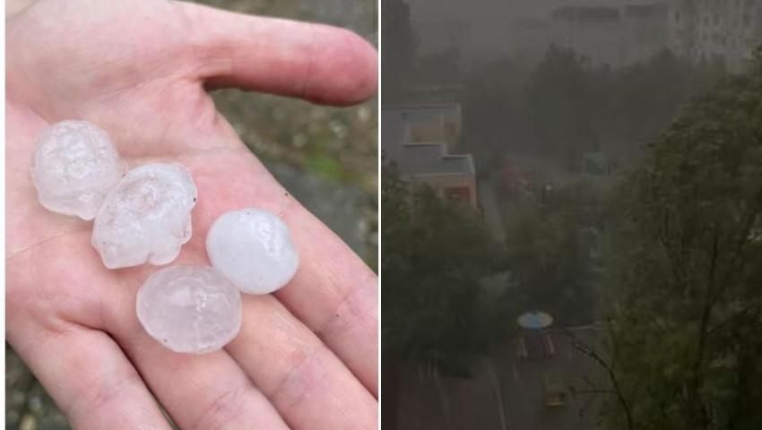 Ploaie puternică în Capitală. Nouri negri au întunecat cerul în plină zi. În unele zone a căzut grindină, iar mai multe străzi au fost inundate.