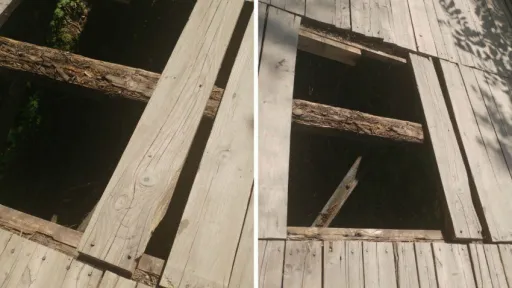 În parcul "Valea Trandafirilor" din Chișinău, unul dintre poduri reprezintă un pericol real pentru oameni. Multe bucăți de lemn au putrezit și au căzut. Au apărut niște găuri uriașe, prin care se vede apa și vegetația.