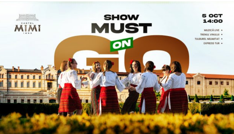 La Castel Mimi vei trăi o experiență unică, într-un cadru spectaculos, te așteaptă vin tânăr Castel Mimi, servit nelimitat, frigărui la Open Air Kitchen, muzică live cu legendara Zinaida Julea, voie bună cu Maria Iliuț și Crenguța de Iederă, Felicia Dunaff împreună cu Dunaff Band și Ansamblul etnofolcloric Dorurele, conducător artistic Vladimir Șchiopu, precum și hora mare cu Ansamblul Strămoșeasca, pentru un preț promoțional de 360 lei per adult și 180 lei, pentru copii mai mari de 12 ani. (biletul nu include cursa de tren).