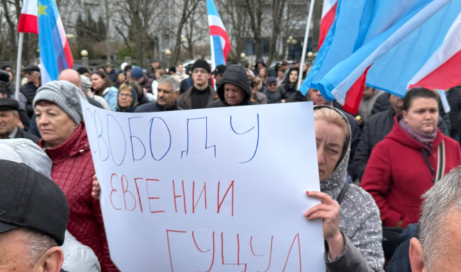 Membrii blocului Pobeda din Comrat au distribuit pancarte pe care scrie: Libertate pentru Eugenia Guțul, Nu represiunilor din Găgăuzia etc.