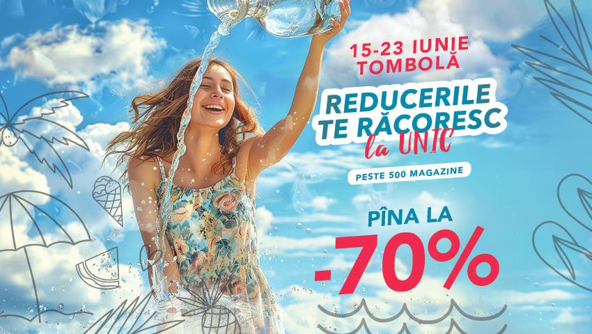 În perioada 15 - 23 iunie, Unic te invită să profiți de campania „Reducerile te răcoresc” în cele peste 500 de magazine partenere. Fie că ești în căutarea unor ținute pentru copii, femei, bărbați, jucării, încălțăminte sau accesorii, acum ai ocazia să achiziționezi produsele dorite cu reduceri de până la 70%.