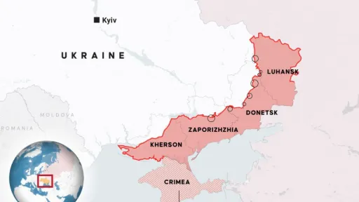 Rusia controlează puţin sub 20% din teritoriul Ucrainei, adică peste 112.000 de kilometri pătraţi (cam cât teritoriul Bulgariei - n.r.), în timp ce Ucraina controlează doar 450 de kilometri pătraţi din regiunea Kursk, potrivit hărţilor câmpului de luptă publicate de surse deschise.