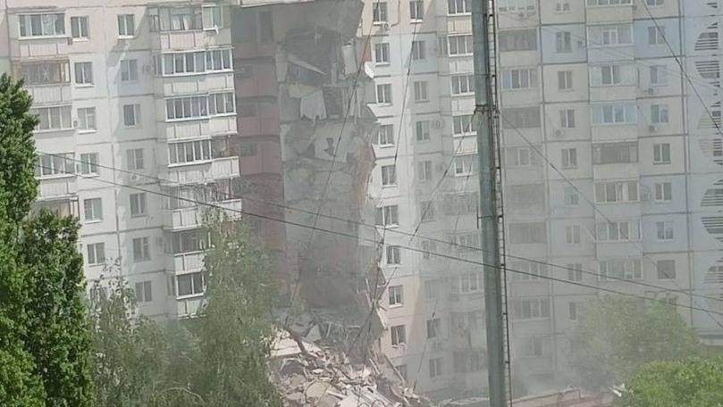 Potrivit oficialului, scara blocului s-a prăbușit în urma unei lovituri directe a unui obuz.