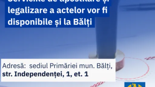 Direcția apostilă și legalizare din Bălți este amplasată pe str. Piața Independenței, 1, clădirea Primăriei mun. Bălți, etajul 1.