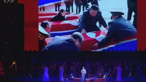 Imagini de la gala difuzată de televiziunea de stat nord-coreeană KRT îl arătau pe Kim, vizibil emoționat în anumite momente, stând alături de invitata sa, ministra rusă a culturii, Olga Lyubimova, și de fiica sa, Kim Ju-ae. În public, mai multe persoane au fost surprinse ștergându-și lacrimile.