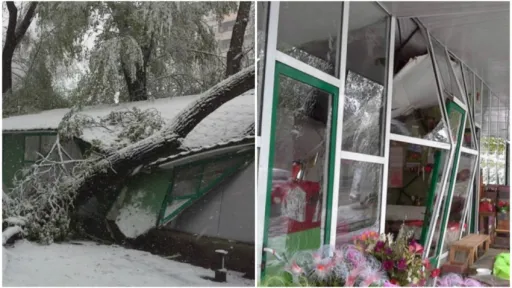 Ninsoarea și vântul puternic continuă să cauzeze pagube mari în Capitală. În centrul orașului, tabloul este unul dezolant. Un copac uriaș s-a prăbușit peste o gheretă de flori, pe care a distrus-o aproape complet.