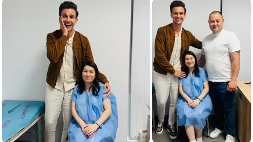 La naștere a asistat soțul actriței, dar și Gabriel Nebunu, bunul ei prieten, a cărui muzică populară a răsunat în sala de operație, pentru a destinde atmosfera.
