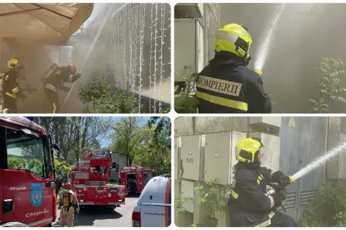 Imagine 02/05/2025 -14:55 News Au intervenit nouă echipe de pompieri și salvatori la stingerea incendiului din centrul Capitalei