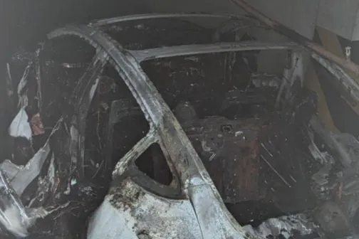 Imagine 24/03/2025 -15:46 News Incendiu într-o parcare subterană din Capitală: O Tesla a fost mistuită de flăcări