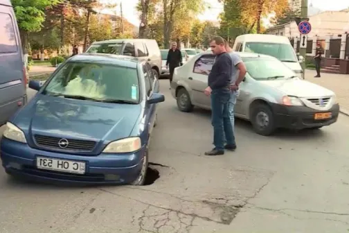 Imagine 13/09/2018 -17:33 News Mai mulţi şoferi au ajuns, astăzi, cu maşina într-o groapă apărută din senin în centrul Capitalei