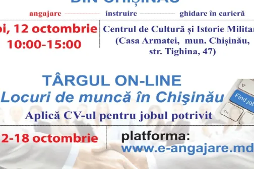 Imagine 04/10/2017 -17:35 News Pe 12 octombrie, vino la Târgul locurilor de muncă din Chișinău! Iată ce oferte te așteaptă