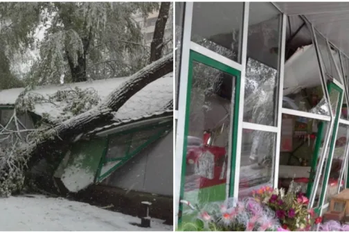 Imagine 21/04/2017 -09:31 Social O gheretă de flori din centrul Capitalei, complet distrusă de un copac uriaș căzut peste ea!