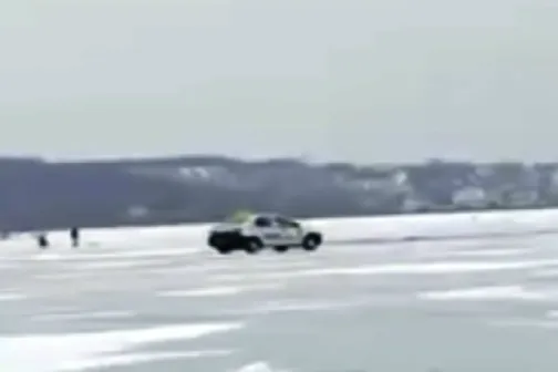 Imagine 30/01/2017 -09:52 Social Un taximetrist traversează lacul înghețat de la Ghidighici cu mașina. Imagini video