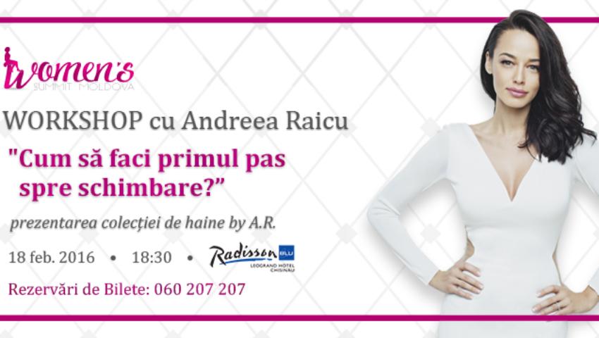 Intitulat sugestiv „Cum să faci primul pas spre schimbare?”, evenimentul se anunță o lecție de prietenie și confesiuni.„Mă bucur să revin la Chișinău, un loc care înseamnă extrem de mult pentru mine, unde am fost primită de fiecare dată cu deschidere, multă căldură și o energie fantastică.Sunt foarte fericită să mă aflu pe 18 februarie la Chișinău în cadrul evenimentului Women`s Summit Moldova. Vom avea ocazia să discutăm despre cât de important este să ne învingem fricile care ne împiedică să trăim așa cum ne dorim.Este important să găsim metode care să ne ajute să trăim liniștit în această lume extrem de agitată, să găsim mereu timp pentru lucrurile pe care ni le dorim cu adevărat. Trebuie să avem curajul să fim noi înşine, să nu mai trăim o viață influențată de ce cred sau ce spun cei din jurul nostru.La sfârșitul evenimentului, veți avea ocazia să vedeți câteva produse din colecția de haine Andreea Raicu. Vă aștept cu drag!”, declară vedeta TV din România.Women’s Summit Moldova, timp de peste 2 ani, a organizat evenimente de dezvoltare personală pentru femei. În cadrul a 18 evenimente au participat peste 3500 femei alături de 17 speakeri excepționali.Detalii Eveniment:Dată: 18 Februarie 2016Oră: 18:30-21:00Locație: Radisson Blu Leogrand Hotel Chișinău (str. Mitropolit Varlaam 77)Costul unui bilet:*299 lei (până în data de 15 februarie 2016).*400 lei (după data de 15 februarie 2016).InfoLine și Rezervare bilete: 060 207 207