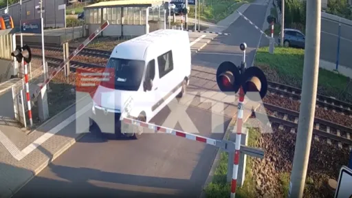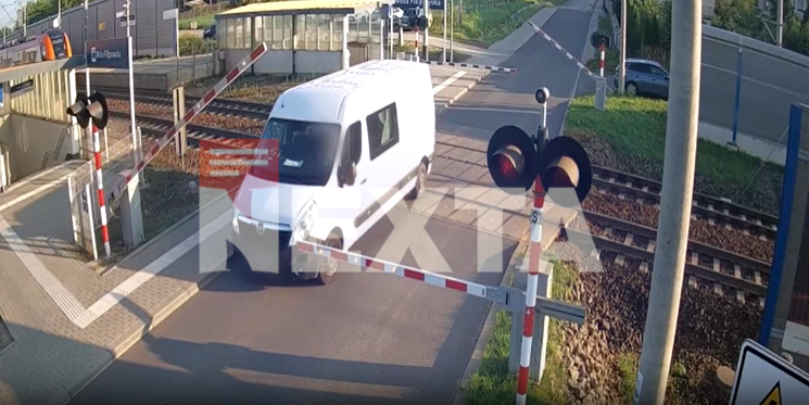 Imaginile surprinse de camerele de supraveghere arată cum șoferul a încercat să dea cu spatele, apoi a forțat din nou înaintarea — intrând direct în fața trenului care se apropia cu viteză.