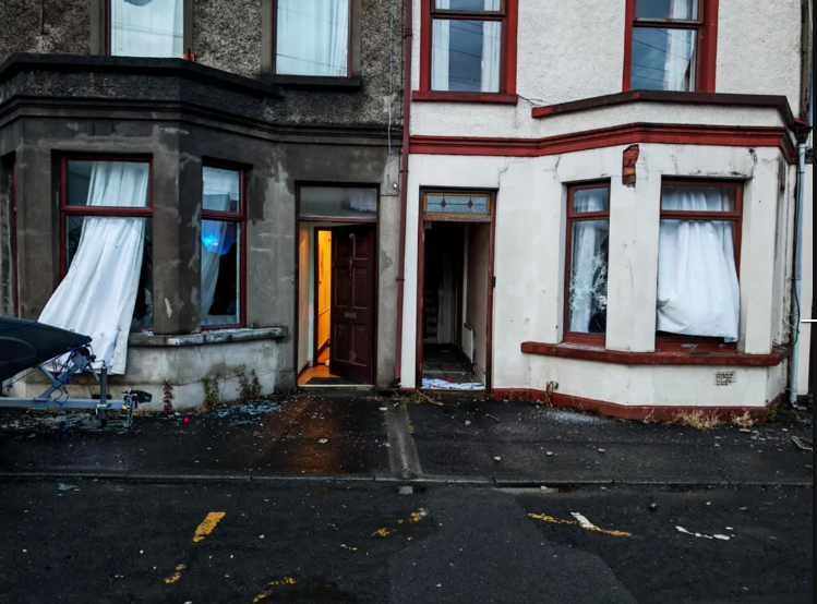 Potrivit aceleași surse, toată comunitatea orașului Ballymena din Irlanda de Nord s-a mobilizat azi noapte. Inițial s-au cerut proteste pașnice dar lucrurile au escaladat grav la câteva ore. „Toate casele de pe stradă au fost incendiate, dar localnicii au scăpat teferi fiind protejați de poliție.”