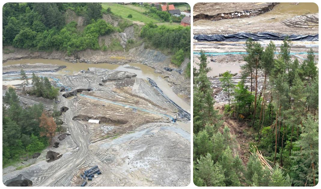 - Sufoziunile produse în data de 03.06.2025 s-au extins în ultimele 24 de ore, atât pe orizontală, cât și pe verticală, doar în zona minei vechi. Menționăm faptul că nu sunt puse în pericol activitățile desfășurate, iar în drumul spre halda de steril nu au mai apărut sufoziuni noi.