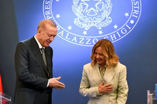 Imagine 13/10/2025 -21:06 Știri externe Erdogan promite să o convingă pe Giorgia Meloni să renunțe la fumat, în timp ce Macron declară că „e o cauză pierdută”
