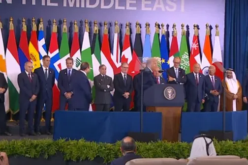 Imagine 13/10/2025 -21:25 Știri externe Trump a stârnit râsete la summitul din Egipt glumind cu liderii europeni