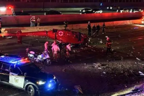 Imagine 07/10/2025 -08:23 Știri externe Trei persoane în stare critică după prăbușirea unui elicopter medical pe autostrada din Sacramento