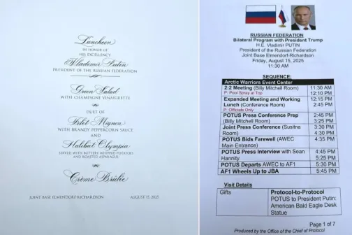 Imagine 16/08/2025 -20:41 News Documente cu marcaje ale Departamentului de Stat al SUA, găsite într-un hotel din Alaska, dezvăluie detalii sensibile despre summitul Trump–Putin