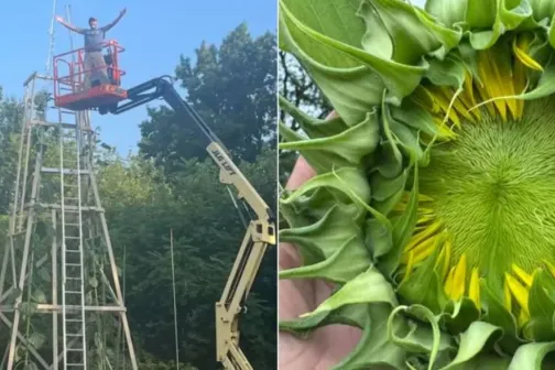 Imagine 09/08/2025 -12:46 News Un bărbat a crescut cea mai mare floarea-soarelui din lume și i-a pus numele „Trifoi”. Ce înălțime are planta